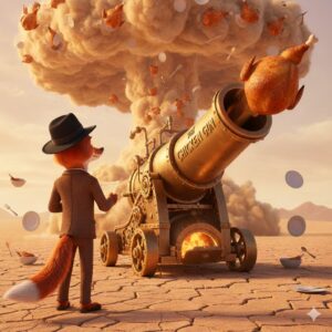 If you’re wondering if a Chicken Gun in the mid 20th century was a real thing? It definitely was https://en.wikipedia.org/wiki/Chicken_gun